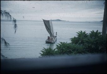 House on double-hulled canoe : Port Moresby, Papua New Guinea, 1953 / Terence and Margaret Spencer