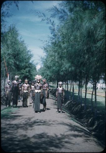 The passing parade on the road past our house, the empty road : Minj Station, Wahgi Valley, Papua New Guinea, 1954 / Terence and Margaret Spencer