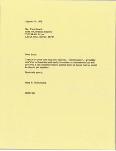 - Thanking Beach for an updated address and noting that he will not be in Hawaii until November.