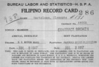 - The Hawaii Sugar Planters Association Filipino Laborer files include data on over 100,000 migrants to Hawaii from 1906-1949. The original collection consists of individual cards, shipping manifests, log books, and associated administrative records.