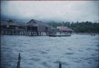 A village woman standing in a hole for burying coconuts, children in background : Tasman Islands, Papua New Guinea, 1960 / Terence and Margaret Spencer
