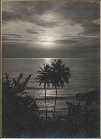 [Sunset over the sea with palm tree, Papua New Guinea, 2]