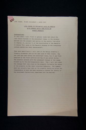 Copyright status: UnknownFind out more about what you are able to do with this itemWe haven't been able to determine the rights status of this item. It may be suitable for sharing, modification and commercial use, but you will need to check with Te Puna Vai Marama Cook Islands Centre for Research about its specific terms of use, and may need to undertake research to find the creator and publisher of each object to determine this. For more information, please see our use and reuse page..What can I do with this item?Non-infringing useNZ copyright law does not prevent every use of a copyright work, and this item may be hosted by an international institute or organisation. You should consider what you can and cannot do with a copyright work.Check before sharingYou'll need to confirm with the copyright holder before copying and/or sharing this item with others. This includes posting it on your blog, using it in a presentation, or any other public use.Check before modifyingYou'll need to confirm with the copyright holder before modifying, remixing, or building upon this item.Check about commercial useYou'll need to confirm with the copyright holder using this item for commercial purposes.