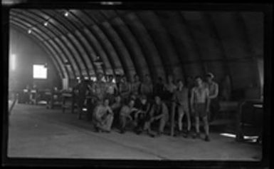 - Photographic group portrait of U.S. Navy servicemen in a Quonset hut, Guam, circa 1944-1950. Several workbenches are present in the hut. Some of the men are identified in a caption provided by the donor's family: Lee, Scotty, Kerns, Red Martin, Tony, and Blackwell [Sohmist?]. Guam
