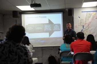 Individual Assistance Specialist Paul Parsons Jr., gives an overview of the FEMA Assessment process to a class of CNMI residents.