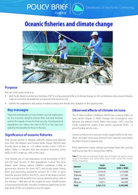 - The aim of this policy brief is to: alert Pacific island countries and territories (PICTs) to the projected effects of climate change on the contributions that oceanic fisheries make to economic development and government revenue and identify the adaptations and policies needed to reduce the threats and capitalise on the opportunities.