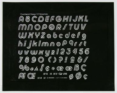- Churchward Design 50 Stripe Italic Print Negative, New Zealand, by Joseph Churchward. Purchased 2008. Te Papa (FE012209/2). Overall: 305mm (width), 380mm (length)