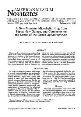A new montane microhylid frog from Papua New Guinea, and comments on the status of the genus Aphantophryne