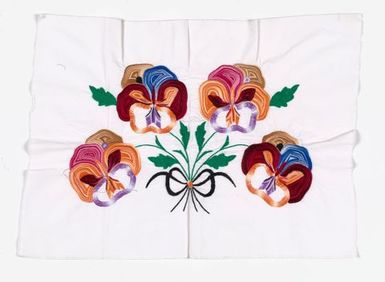 - Tataura (Embroidered) Pillowcase, New Zealand, maker unknown. Purchased 2013. © The copyright holder. We are actively seeking the copyright holder. Contact copyright@tepapa.govt.nz if you can help. Te Papa (FE012810/1). Overall: 550mm (width), 770mm (length)