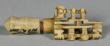 - Pu taiana (women's ear ornaments), 1800s, Marquesas Islands, maker unknown. Oldman Collection. Gift of the New Zealand Government, 1992. CC BY-NC-ND 4.0. Te Papa (OL000216/1b). Overall: 16mm (width), 49mm (length), 10mm (diameter)