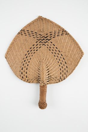 - Iri Buli. Fan. Woven in the style distinctive to the women of Daku village, Tailevu province. Woven from drau ni niu (coconut leaflet) (coconut leaflets) of natural colour, incorporated with somo (black dyed strips of voivoi, or pandanus) to decorative effect, and magimagi (coconut sennit) braided in tali tolu (3 ply braiding technique) tightly wrapped around the handle. Blade's commencement at centre base, woven out in vertical twill. Somo wo...