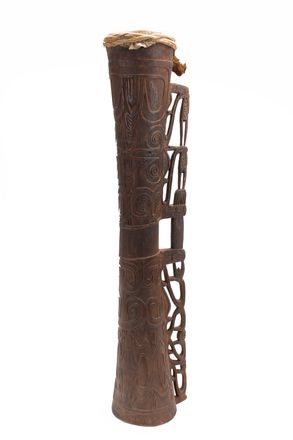 - Carved bowl with whole head - neck, full facial features including ears at distal end front and relief motif patterning over base. Made from a single piece of wood with bowl space hollowed out. Food bowl which would have been made for special feasts. Here again the classic anthropomorphic figure is repeated representing the ancestors. Bowl is 370x65x110mm,