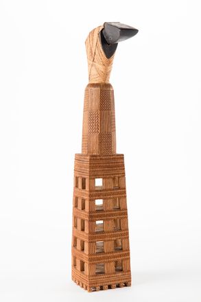 - Ruatangaeo. Hafted adze (adze missing). An intricately carved wooden haft. Square pedestal base and shape. Top of the haft carved out to accommodate the fitting of a toki (adze). Puru akari (braided coconut sennit) of a fine flat iri taki toru (3-ply braid) loosely lashed on to the top of the haft. Repeated triangular geometric designs carved all over the wooden pedestal. The lashing is natural in colour. The wooden haft is stained brown.