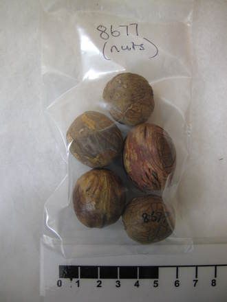 - nut- used for a humming top; minus the peg. (Unlikely to be humming top without humming hole, could be a simple top. Alternatively, could be a vessel flute with one fingerhole- amended by L.S. Sranners.