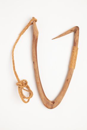 - Kau hi palu. Ruvettus hook. This is a kau hi palu made of wood. The wood is a light shade of brown and has smooth surface. The kau hi palu is shaped like an inverted triangle with two edges that meet in the middle. The pointed tip is angled towards the back of the kau hi palu. Kafa (sennit) has been wrapped around the kau hi palu near the tip for further support. The leke (proximal end of hook) has been carved to create a lug. This lug has the...