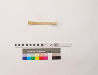 - short lengths of pandanus? leaf with cut-out chevron pattern in centre through length of leaf