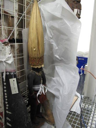 - Image, crudely carved in typical position from the moikui wood.