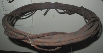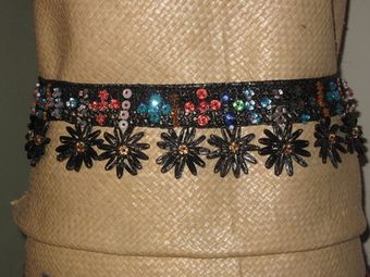 - Girdle or belt, of horse hair, plaited band, beads threaded into diamond pattern weave, large pearl beads attached to bottom