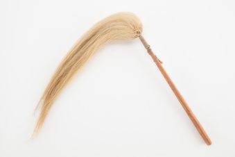 - Fue sina. White fly whisk. Fue are part of the regal accountrements of high chiefs and orators when they make oratory presentations. This fue has a long thin tapered wooden handle that is attached to a whisk of blonde horse hair. The handle is a deep mahogany colour and has a square carved base and has decorative carving in three sections of the handle that have been inlaid with lime. Fuafuati (bundle of strands in a fue) are made out of long ...