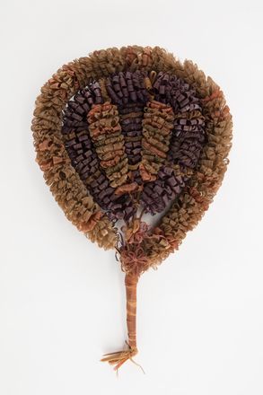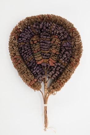 - Ili tea. Finer fan. This is a hand woven 'ili tea. Tuāniu (coconut midrib) has been lalaga (woven) to form the lau (blade). Dyed fau (type of hibiscus) in dark green and red has been applied to the exterior of the woven lau to portray patterns. A braided centre at the base of the lau encases the top of the wooden 'au (handle). 'Afa (cordage of sennit) has been used to tie down the lau to the 'au. The 'afa portrays a filitolu (three-ply) braid....