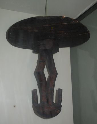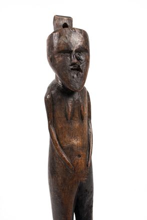 - wooden meat hook. male figure. drilled projection on the head. Oldman Note: "Collected in Fiji by Canon Wickstead, Old Bexley, Hert." illustrated in 'Polynesian Artifacts' pl 66.