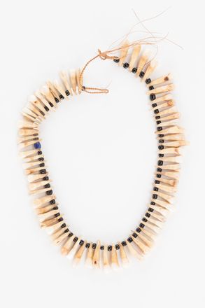 - Te mwae ni wi n aomata. Neck ornament of eighty-seven human teeth. A neck ornament of wi n aomata (human teeth), each perforated at the root. The wi n aomata are yellowed with age. Each are strung onto te kora (coconut sennit) of a light brown colour. The kora is knotted at each end.