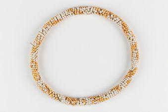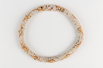 - Ei taomi pare. Hatband. Band is flat and lined with cloth patterned with red and black designs. Cotton thread is threaded through yellow, orange, and white coloured pupu rikiriki (small shells) which are hand-sewn into the band and methodically arranged to create a checkered pattern across the entire band. Nine pupu (shells) constitute each square.