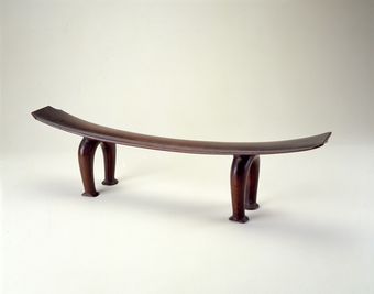- bamboo headrest. This headrest is made from a length of bamboo, with wooden feet attached. The bamboo is carved all over with different geometric patterns.