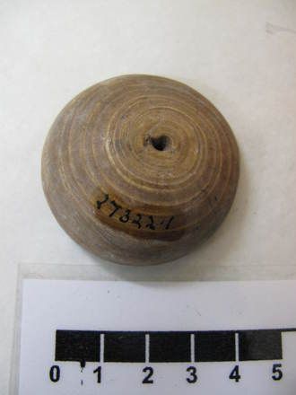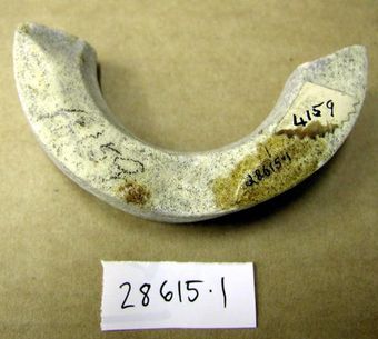 curved worked fragment of tridacna shell. possibly part of armlet.
