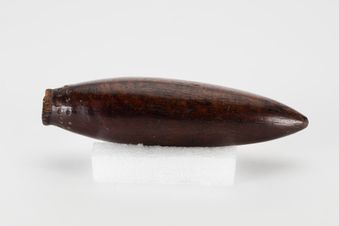 - Ulutoa. Dart head component from a throwing game. Carved from hardwood into a cylindrical bullet shaped form, highly polished. Round in section. Hollowed inside at the butt with a smaller wooden stick component protruding outwards. Dark brown in colour. Small hole drilled near rim through which fine magimagi (coconut sennit) cord is threaded through.