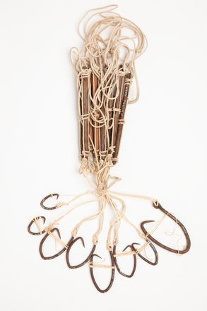 - Au. Thatching awl. This au is cut and polished from a segment of animal bone. It was used in the thatching of rooves of old-style Tokelauan dwellings. The au is curved in profile, cut at a slant and sharpened to a point. It has a highly polished surface treatment. It is light yellow with some discolouration.