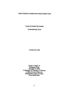 - The National Museum of the Pacific War presents an oral interview with Joseph V. Kight, Jr. Kight was born 21 August 1924 in Pleasanton, Texas. He joined the Marines at age 17 in April 1942 in San Antonio and attended boot camp and radio school in San Diego where he trained as an artillery forward observer (AFO). His permanent unit was 12th Mari...