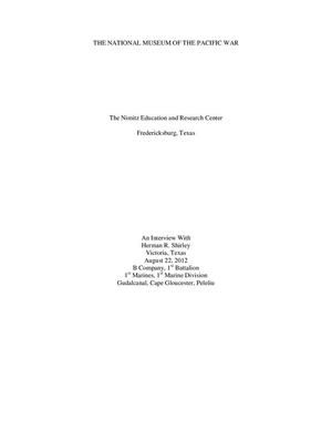 - The National Museum of the Pacific War presents an oral interview with Herman R. Shirley. Shirley joined the Marine Corps in Alabama shortly after the attack on Pearl Harbor and trained at Parris Island, South Carolina. Upon completion oftraining, Shirley headed for New Zealand aboard the USS Barnett (APA-5) and was assigned to Baker Company, 1s...