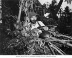 Dr. J. P. E. Morrison hunting a gooney bird, Bikini Atoll, summer 1947