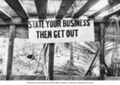 Sign left behind from Operations Crossroads, Bikini Island, summer 1949