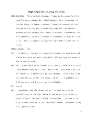 Oral History Interview with Ralph Edgar, December 7, 2011