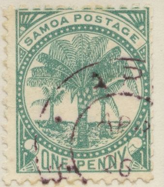 - Stamp from Gösta Bodman’s philatelistic collection of motifs, begun in 1950. Stamp from Samoa Islands, 1887. Motif of coconut palms.