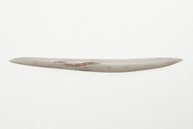 - Physical description: Main list: 164 - 166. Tunnare stenpinnar burna av kvinnor i näsan. Namn: íni ell. wódemúti. A thin smooth, slightly curved tree of light stone, with its ends tapering sharp. Long nose-stick with sharpened heads, women.