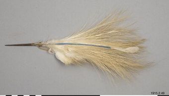 - Kasuar feathers buzzed with plant fiber wire against pointed wooden stick. White Top Feather, At the Fortress also Red Springs.