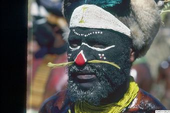 ["man, porträtt, halsband, ansiktsmålning, skägg, huvudbonad, fotografi, photograph"]