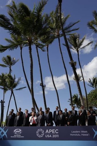 Barack Obama poses with other leaders for the APEC Family Photo in Honolulu, Hawaii, November 13, 2011