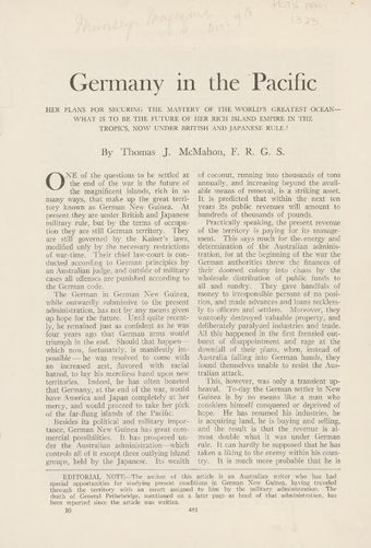 The German menace in the Pacific : the position now existing in German New Guinea / by Thomas J. McMahon.