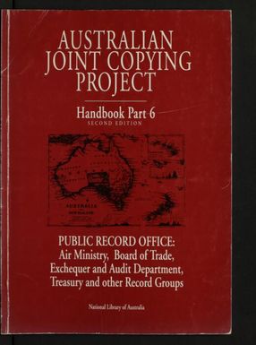 Australian Joint Copying Project handbook. Part 6,Public Record Office - Air Ministry, Board of Trade, Exchequer and Audit Department, Treasury and other Record groups / compiled by Margaret E. Phillips and Ekarestini O'Brien.