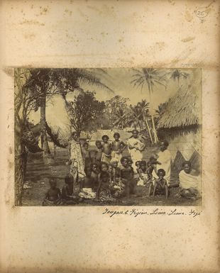 - Group of Tongan and Fijian men, women and children photographed ca 1882-1884 in front of a house in Fiji, probably by a member of the crew of HMS Espiegle. The location is described in the original caption as "Lima Lima". Inscriptions: Album page - bottom right - Tongans & Fijians. Lima, Lima, Fiji HMS Espiegle undertook a number of cruises in Melanesia, Micronesia, Western Polynesia and New...