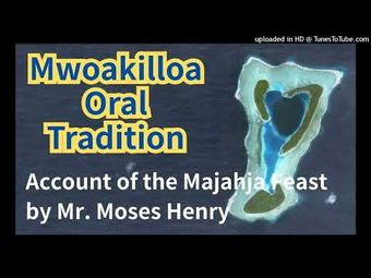 - The late Mr. Boaz Poll narrates the account of the origin of the forty-days funeral feast, Mwoakilloa. This narration was recorded by NGO Pasifika Renaissance Executive Director Takuya Nagaoka during the Mwoakilloa Oral Tradition Documentation Project "Oh Mehjwa." The project was conducted by Nagaoka and Barbara Hicks in 2002-2003 as a special project of the Pohnpei State Historic Preservation Office, funded by the U.S. National Park Service. We would like to thank the Mwoakilloa people for t...
