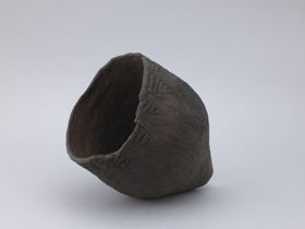- Szürkére égetett agyagból, spirális technikával készült edény, kívül a használattól sötétszürkére koromnyomokkal. Az edény teste tojás alakú, szájpereme egyenes. Pereme alatt kb. 2 cm szélességben hullámvonalakból álló plasztikus dísz található. A hullámvonalakon mindkét oldalon apró bevagdalások láthatók.