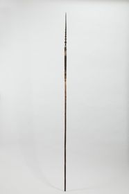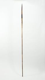 - Kétrészes nyílvessző. A bambuszból készült szárba növényi rostfonttal rögzítették a fából faragott, kerek keresztmetszetű hegyet, melybe szakákat és geometrikus motívumokat faragtak. Ezeket fehér festéssel töltötték ki. A szárat beégetett motívumokkal díszítették.