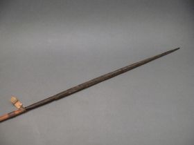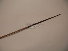 - Háromrészes nyílvessző. A nádból készült szárba növényi rostfonattal rögzítették a keményfából faragott középrészét, amihez hasonló technikával erősítették hozzá a nádból metszett, levélalakú hegyet.