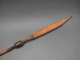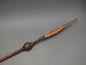 - Kétrészes nyílvessző. A bambuszból metszett szárba növényi rostfonattal rögzítették a keményfából faragott, négyszögletes keresztmetszetű hegyet, melynek alsó harmadába körbefutó rovátkát véstek. Szárába hosszanti irányú párhuzamos csíkokat égettek.