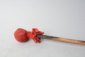 - Ovális alakú, lapos gyanta, vöröses színű földfestékkel bevonva.